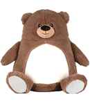 100% polyester. Soft plush brown bear. Sewn eyes. Contrast nose. White coloured panel on tummy and feet. Removable inner pad. Zip access for decoration onto front panel. Suitable for embroidery, vinyl print and sublimation.