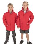 Fully taped waterproof seams, Inner elasticised cuff and reflective tape cuff detail, Concealed three panel fold-away adjustable hood in collar, Full front zip fastening with storm flap, Two front pockets, inside pocket, Reflective safety tape across lower back, Name and class tag inside left hand pocket, Adjustable drawcord hem (EN14682 compliant), High collar design with fleece facing, Height: 98-104cm 110-116cm 122-128cm 134-140cm 146-152cm 158-164cm, Age 13/14 subject to VAT