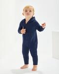 Brushed back super soft fabric with single layer hood and kangaroo pockets, Zipper from top neck to lower leg for ease of dressing and decorating, Zip features comfort tab and placket, and both back neck taping and locker patch, Extra-long ribbed cuffs at sleeve and legs which can be worn folded and unfolded as baby grows, Tear-off style label for ease of rebranding, Made from Oeko-Tex Standard 100, OCS blended certified, GOTS certified, *Heather Grey Melange: 71% (organic or in conversion to organic) cotton, 21% rPET, 8% viscose, *Height: 66/76cm 76/86cm 86/93cm 92/98cm 104/110cm