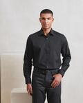 Stiffened formal collar, Back yoke and darts for shape, Double-button cuff with cufflink hole, Sleeve guard with single button, Contains recycled polyester